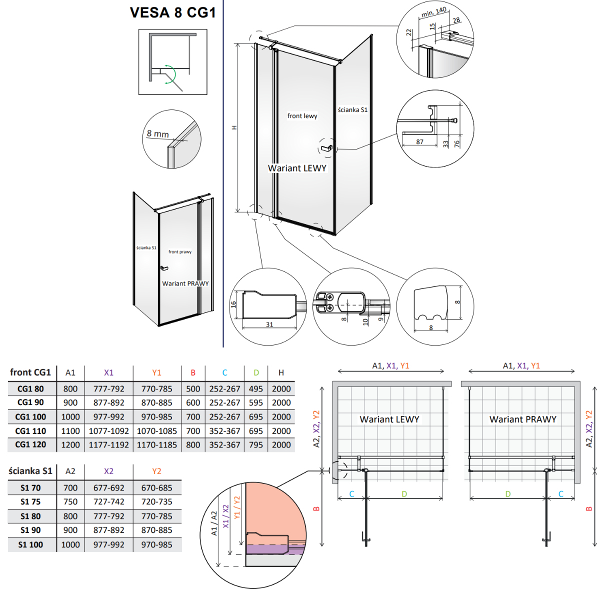 Kabiny te dostępne są w dwóch wariantach kolorystycznych profili – klasycznym chromie błyszczącym oraz modnym czarnym macie – co umożliwia swobodne dopasowanie ich do różnorodnych aranżacji łazienkowych. Prosta forma, wysoka funkcjonalność oraz precyzyjnie dopracowane detale czynią z Vesa 8 doskonały wybór dla osób, które poszukują harmonii między praktycznością a nowoczesnym designem.