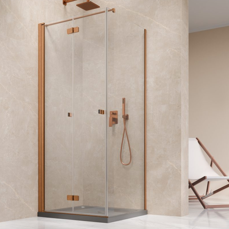 Vixor Vesa 6 CF1 Kabina prysznicowa prostokątna lewa Miedź szczotkowana 80x70 cm (N09-25080-93-01L+N09-60070-00-01)
