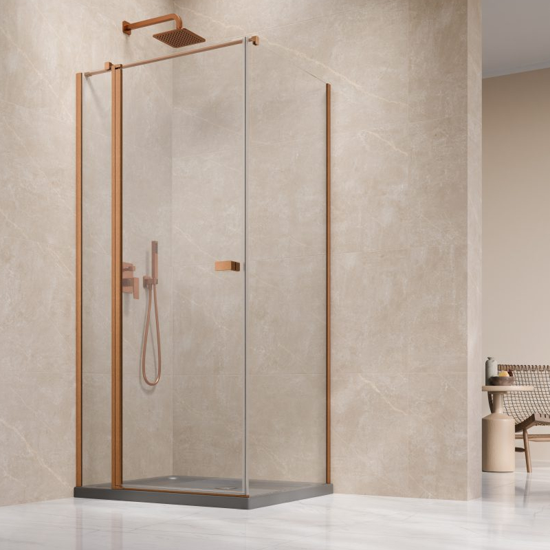 Vixor Vesa 6 CG1 Kabina prysznicowa prostokątna lewa Miedź szczotkowana 80x70 cm (N09-24080-93-01L+N09-60070-00-01)