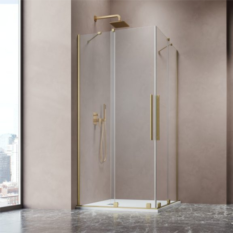 Vixor Milo 8 CG2 Kabina prysznicowa prostokątna narożna złoty szczotkowany 110Lx120P cm (N05-21110-99-01L+N05-21120-99-01R)