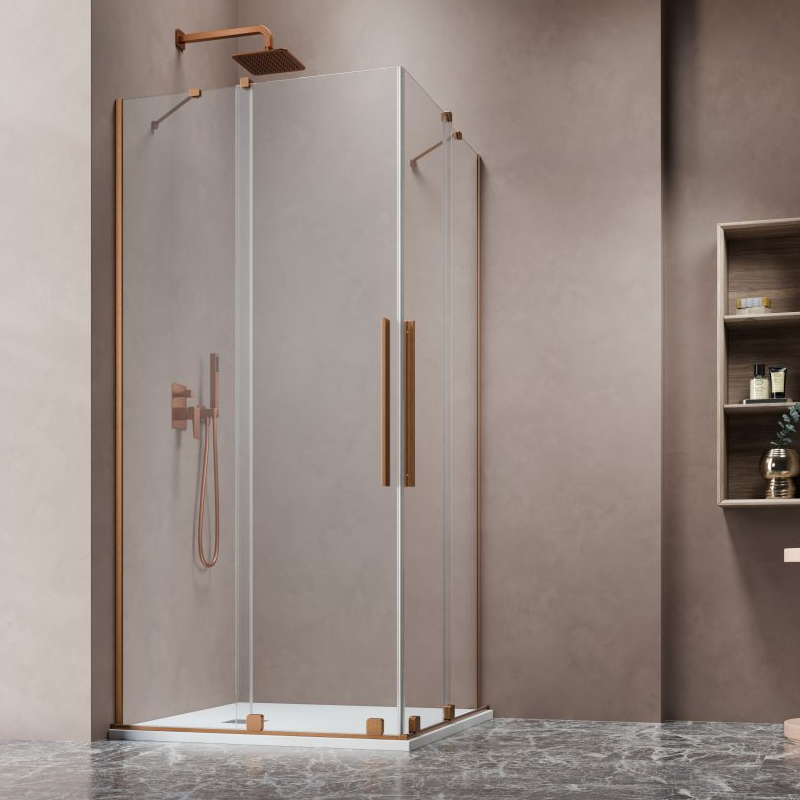 Vixor Milo 8 CG2 Kabina prysznicowa prostokątna miedź szczotkowana 80Lx100P cm (N05-21080-93-01L+N05-21100-93-01R)
