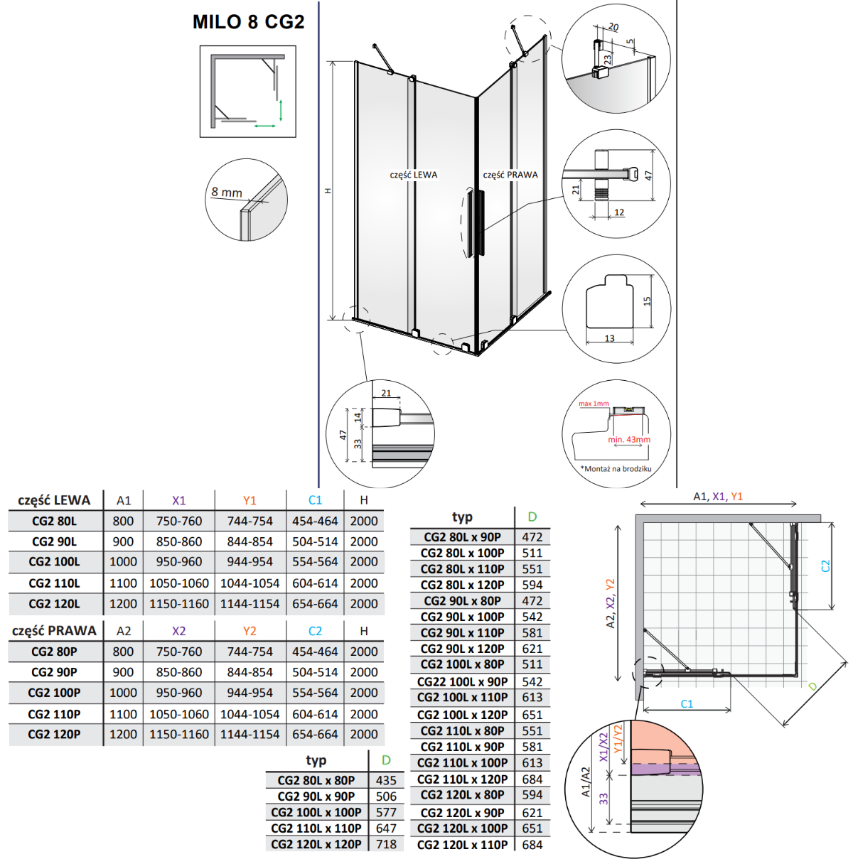 - Innowacyjny design: Brak górnej prowadnicy nadaje kabinie lekki, minimalistyczny wygląd.