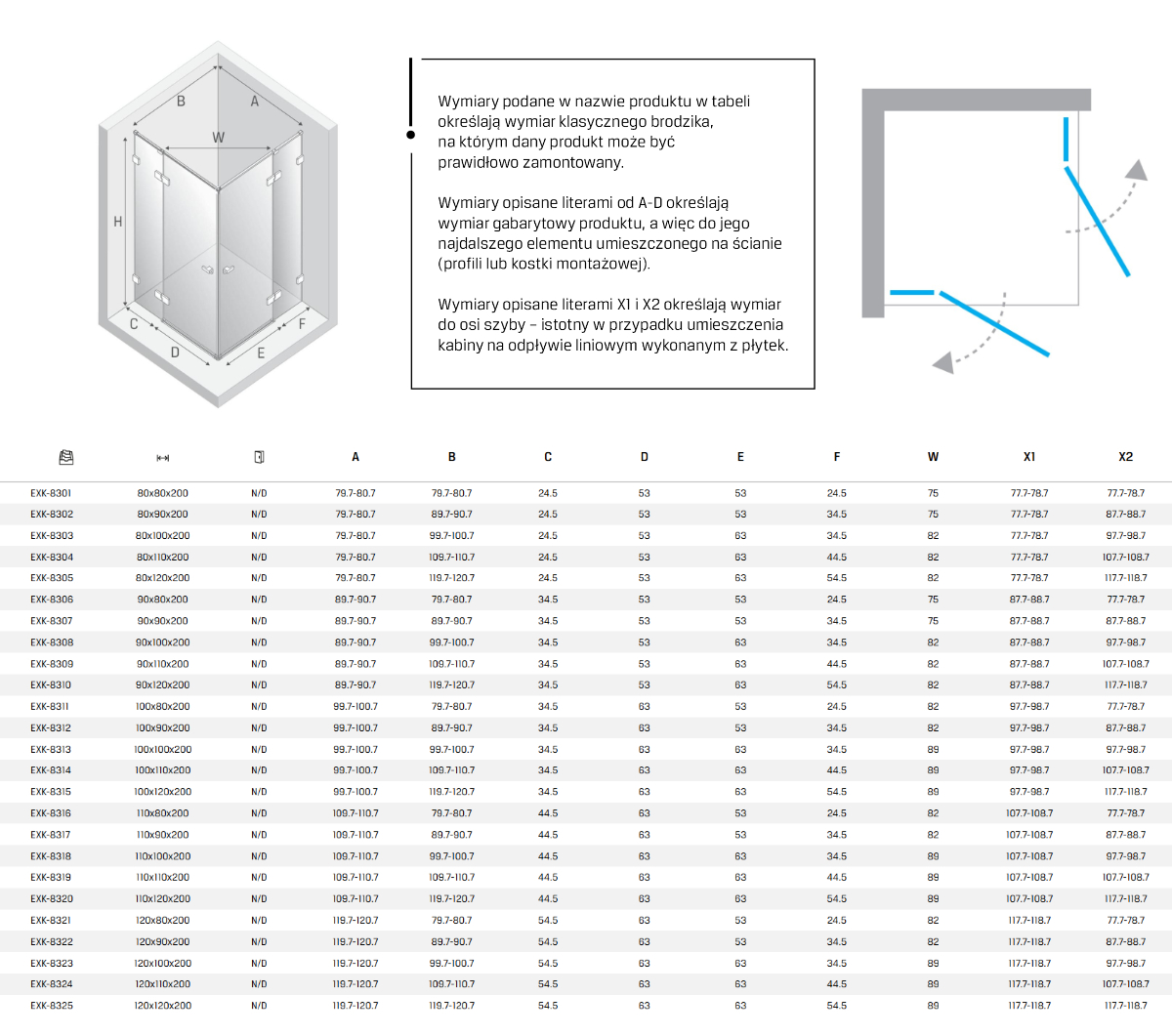 - Możliwość montażu z brodzikiem lub bez brodzika.