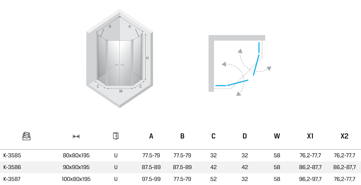 Kabina prysznicowa gold brushed 2D pięciokątna 80x80x195 cm