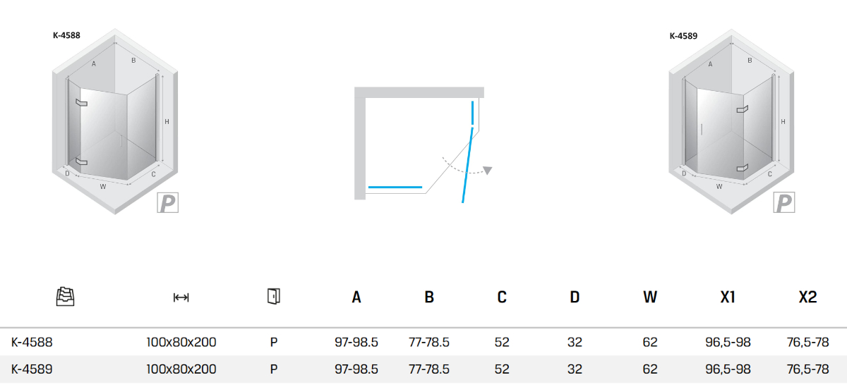 Kabina light gold 1D pięciokątna prawa Drzwi prawe 100x80x200 cm Active Shield 2.0