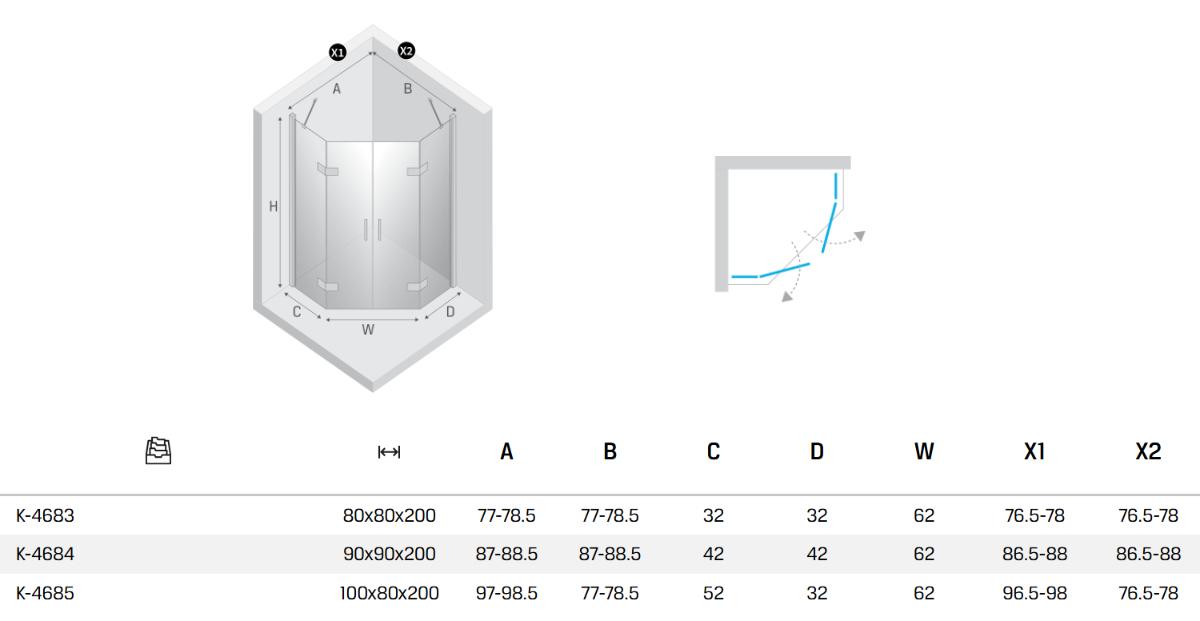 SanSwiss Divera D22K+D22F1 Kabina prysznicowa drzwi dwuczęściowe chrom 90x80x200 cm Szkło...