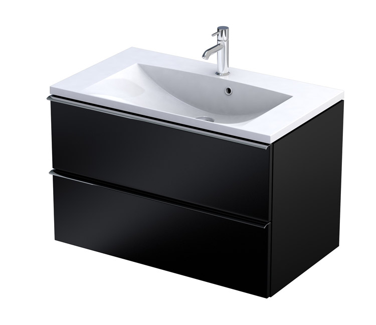 Roca Alpine Szafka (3 szuflady) z umywalką ceramiczną 80 cm czarny mat (A857868532+A32799C000)