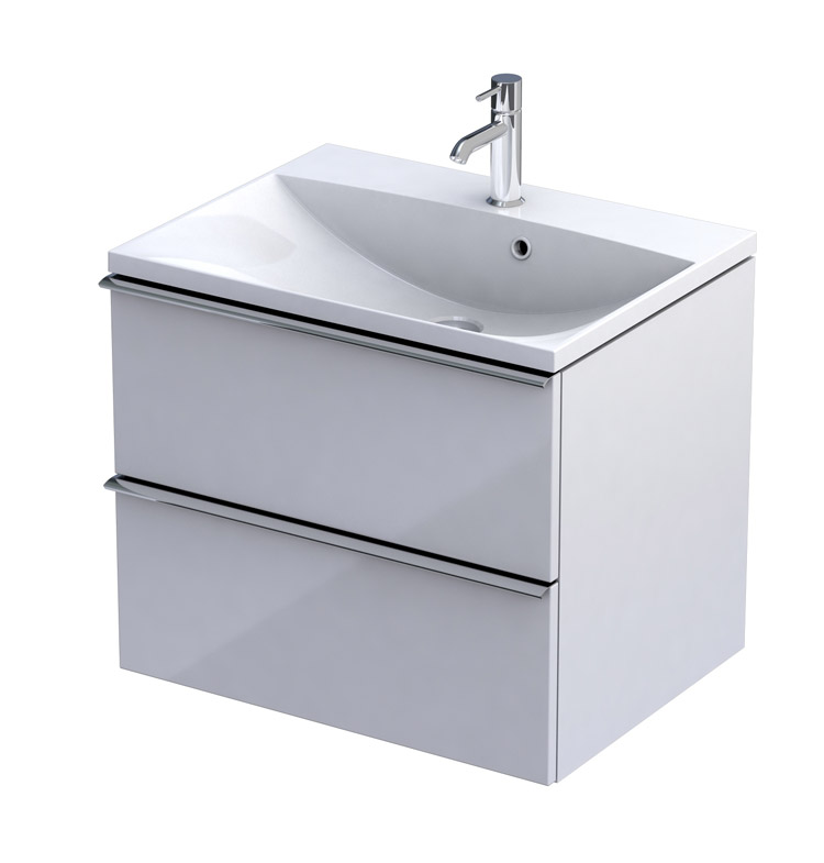 Oristo Etna Szafka Podumywalkowa Biały Połysk + Umywalka Konglomeratowa Amelia 60 cm (OR52-SD2S-60-1+UME-AM-60-92)