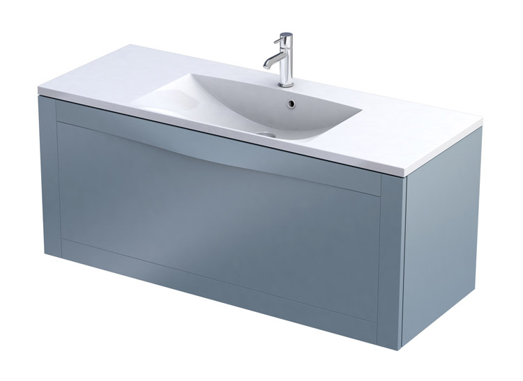 Oristo Skagen Szafka Podumywalkowa szaroniebieski mat + Umywalka Pojedyncza Konglomeratowa Amelia 120 cm (OR49-SD1S-120-16+UME-A