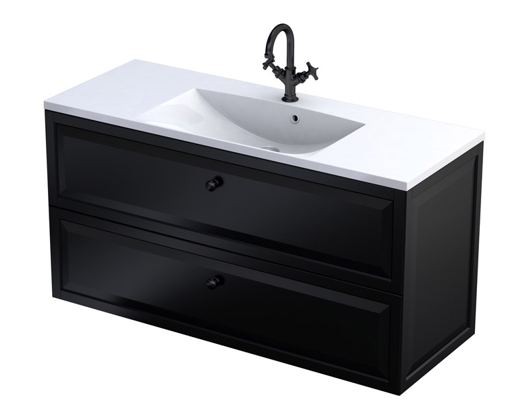 Szafka Podumywalkowa czarny mat + Umywalka Podwójna Konglomeratowa Amelia 120 cm