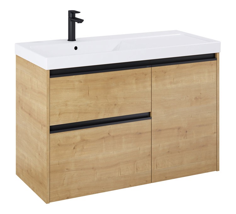 Zestaw łazienkowy Unik szafka z koszem cargo + umywalka lewa 100 cm