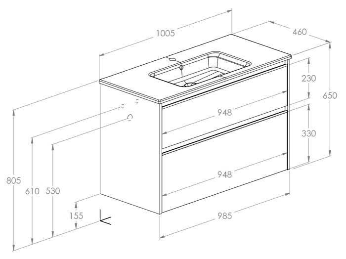 Roca Tura Zestaw szafka z umywalką UNIK (dwa otwory na baterię) 100 cm szlachetny szary (A852038559)