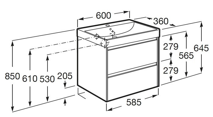 Roca Ona Zestaw łazienkowy UNIK Compacto (szafka z umywalką) biały mat 60 cm (A851684509)