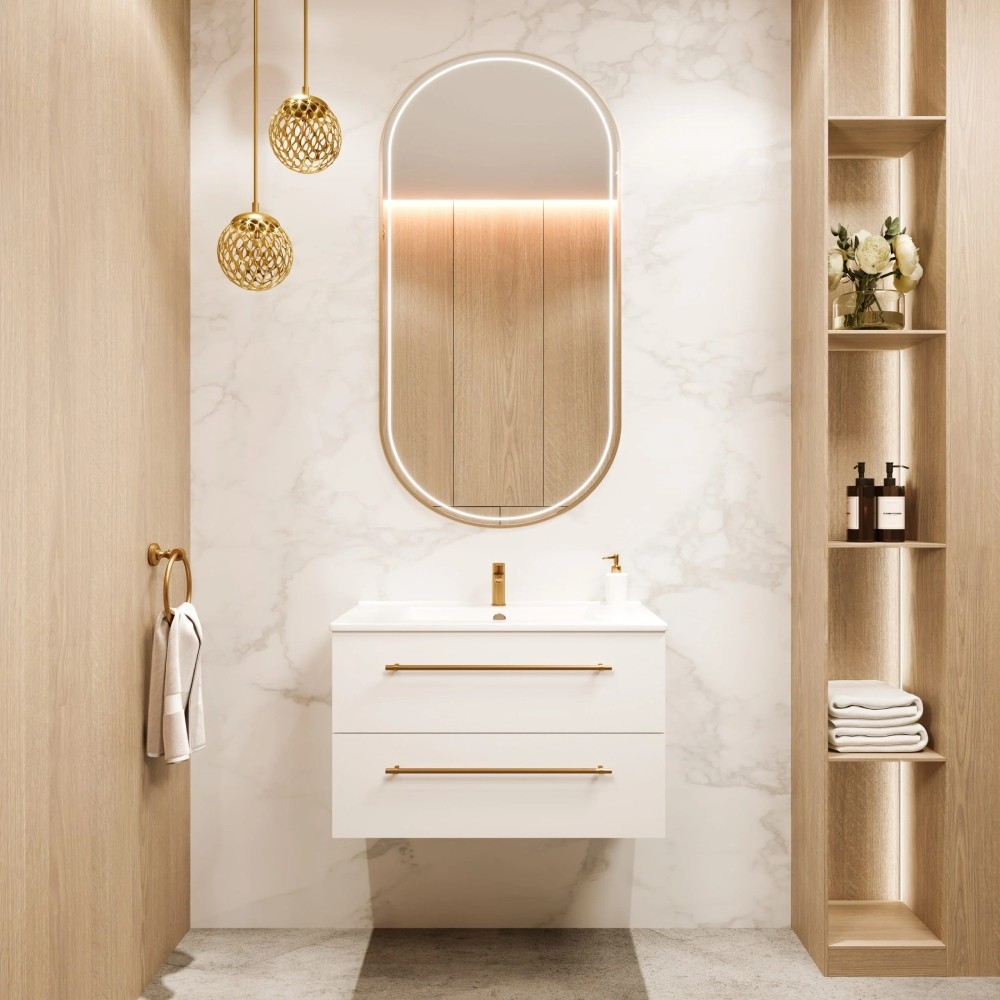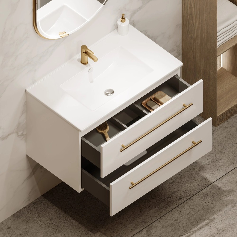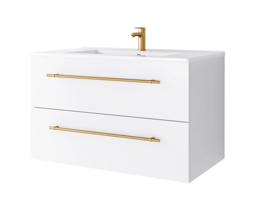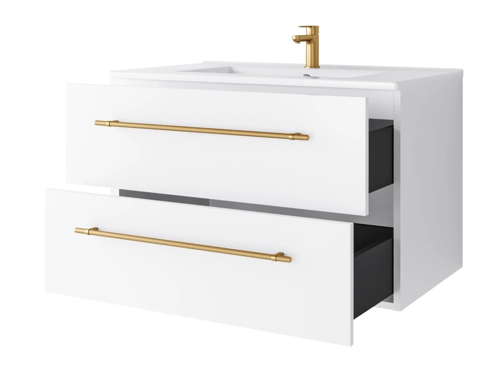 Uptrend NAVA 80 cm 0D2S zestaw szafka z umywalką Biały Mat - uchwyt złoto (004-SU80-02+UP4530-800)