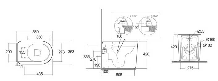 Miska WC stojąca Rimless 56x36,3 cm biały połysk