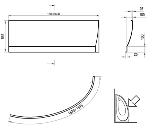 Panel przedni montowany do wanny Avocado 160x75 L (CQ01000000). Panel w kolorze snowwhite. Do panelu dołączony zestaw montażowy (B28000000N).