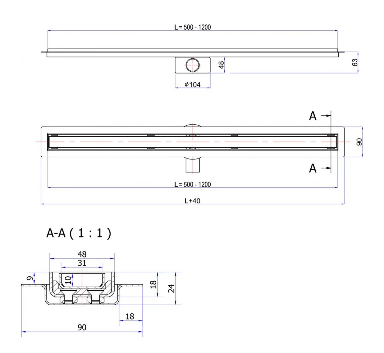Odpływ wykonany został z wysokogatunkowej stali nierdzewnej 304, odpornej na korozję i działanie detergentów. Kratkę można wykończyć tym samym materiałem co podłoga, np. płytkami lub mozaiką, aby uzyskać niemal niewidoczny efekt.