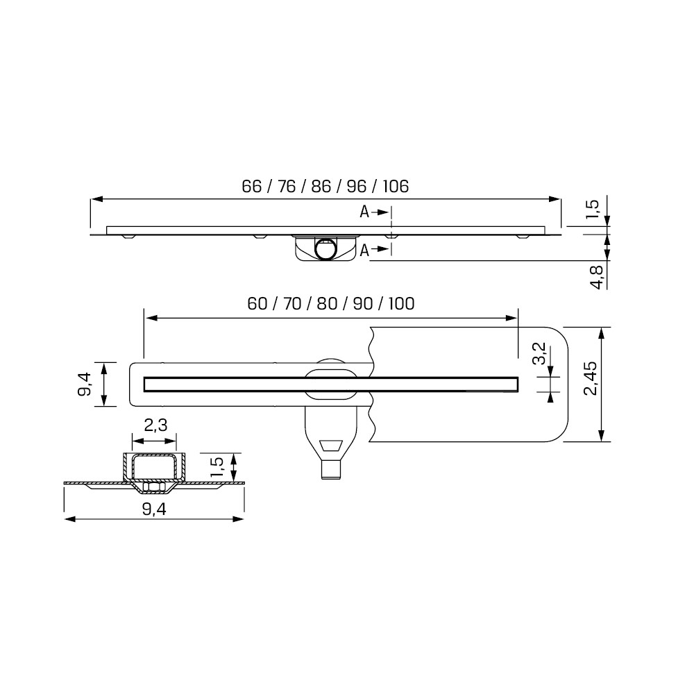 Wiper Premium Ponente 60 cm odpływ liniowy z syfonem drop 50 (OL60P-PON-DROP-50)