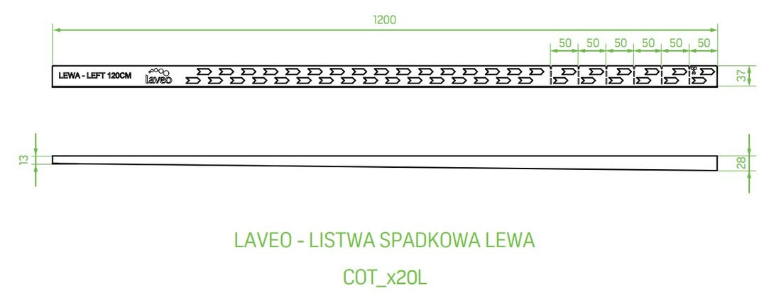 Listwa spadkowa do odpływu liniowego 120 cm, lewa (COT_220L) firmy Laveo.
