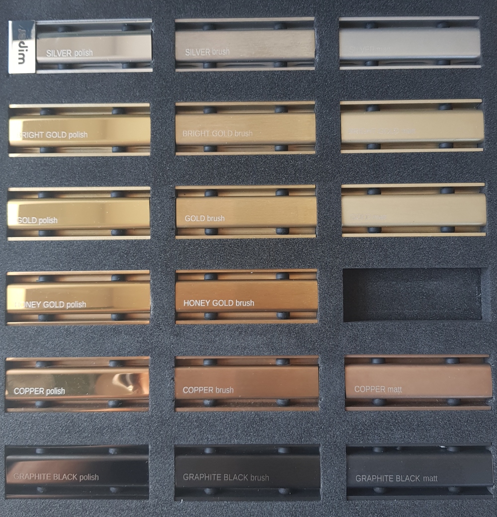 - BRIGHT GOLD (Jasny złoty) – delikatny, jasny, lekko miedziany odcień, pasujący do nowoczesnych aranżacji.