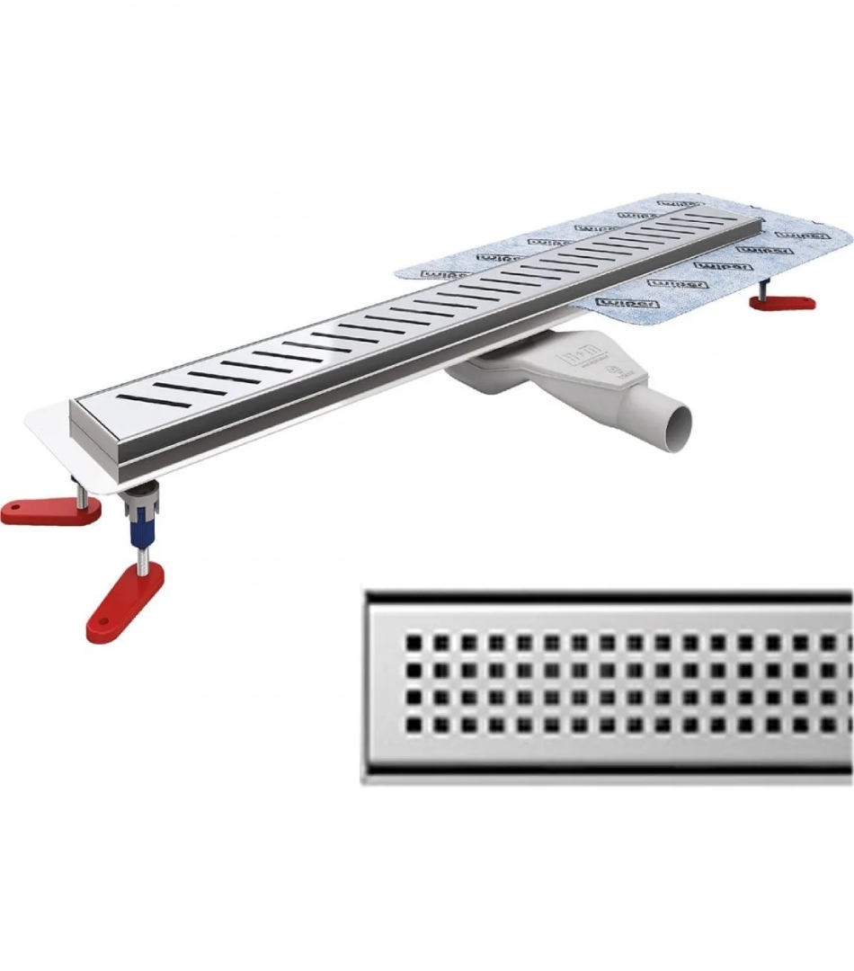 | Skład zestawu | Korpus odpływu liniowego · Kratka odpływowa · Syfon · Nóżki regulacyjne · Mankiet uszczelniający |