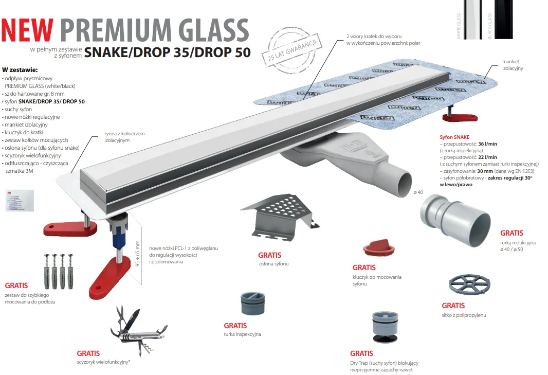 - 25-letnia gwarancja: Gwarancja producenta daje pewność, że odpływ będzie służyć przez lata.