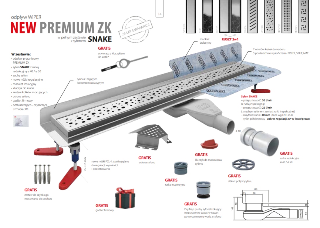 - 25-letnia gwarancja: Gwarancja producenta daje pewność, że odpływ będzie służyć przez lata.