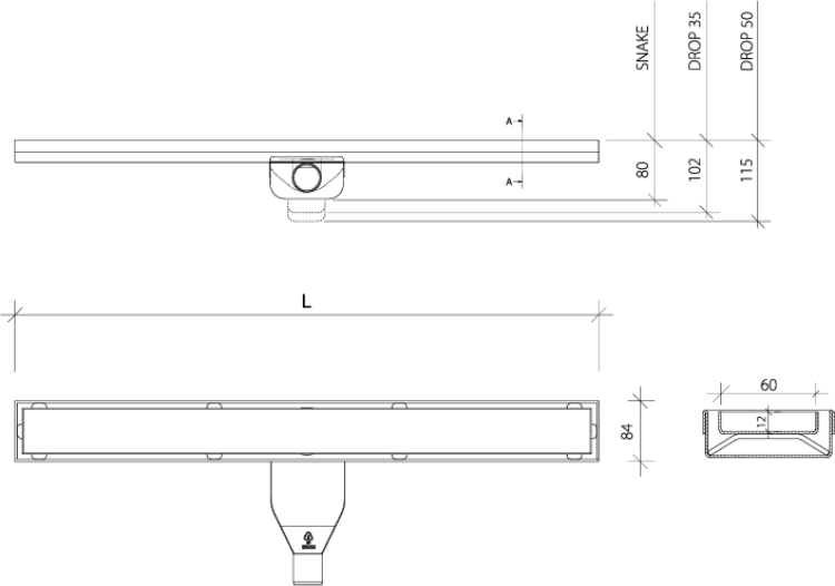 Wiper Classic Ponente Odpływ liniowy 80 cm z syfonem drop 35 (CLASSIC-80-PONENTE-DROP-35)