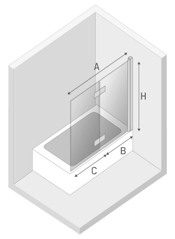 PARAWAN WANNOWY SKRZYDŁO POJEDYNCZE SKŁADANE PRAWE 120X140 CM, SZKŁO PRZEZROCZYSTE 6 MM