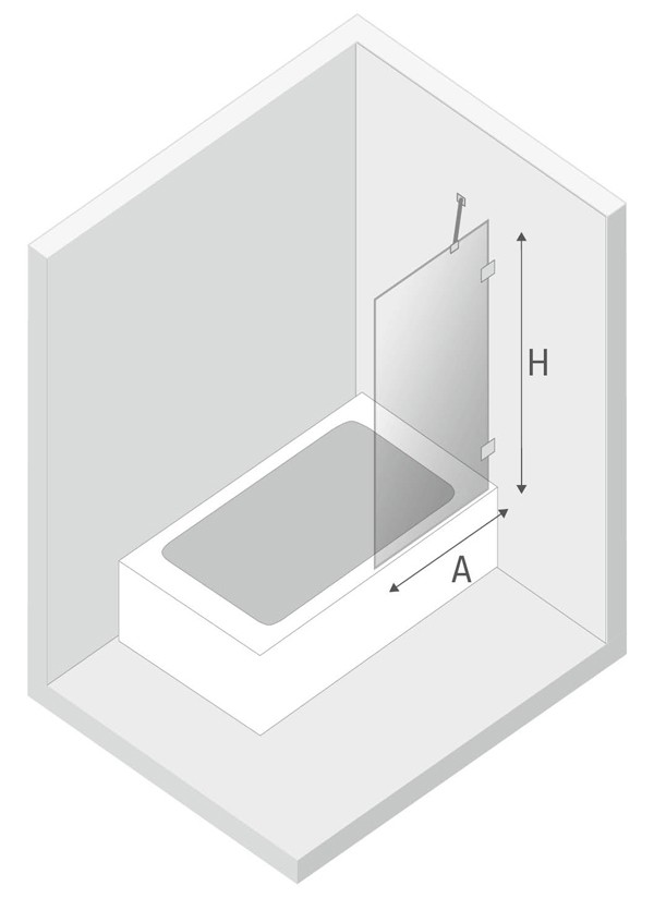 PARAWAN WANNOWY SKRZYDŁO POJEDYNCZE NIERUCHOME 60X150 CM, SZKŁO PRZEZROCZYSTE 6 MM