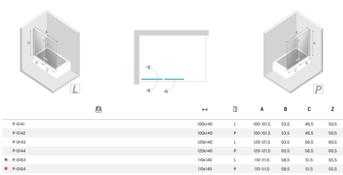 New Trendy New Soleo Parawan Wannowy 50x140 cm Skrzydło Pojedyncze Uchylne Szkło Przezroczyste 6...