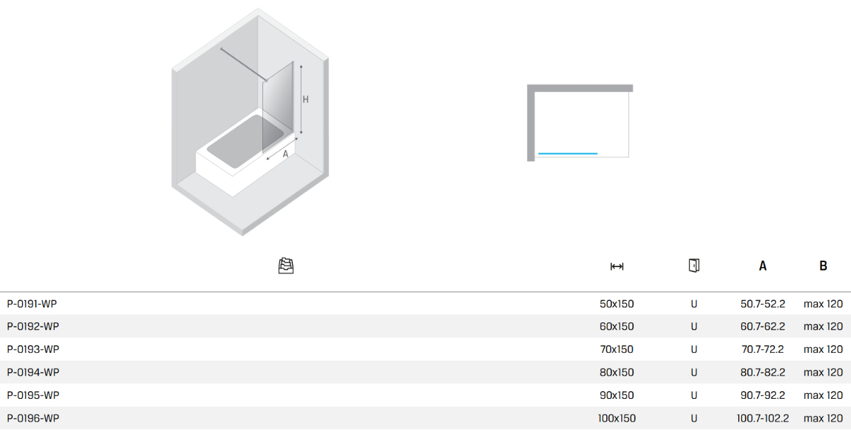 New Trendy Nesta Parawan nawannowy stały U 50x150 cm 8mm Active Shield 2.0 - wsp. równoległy (P-0191-WP)
