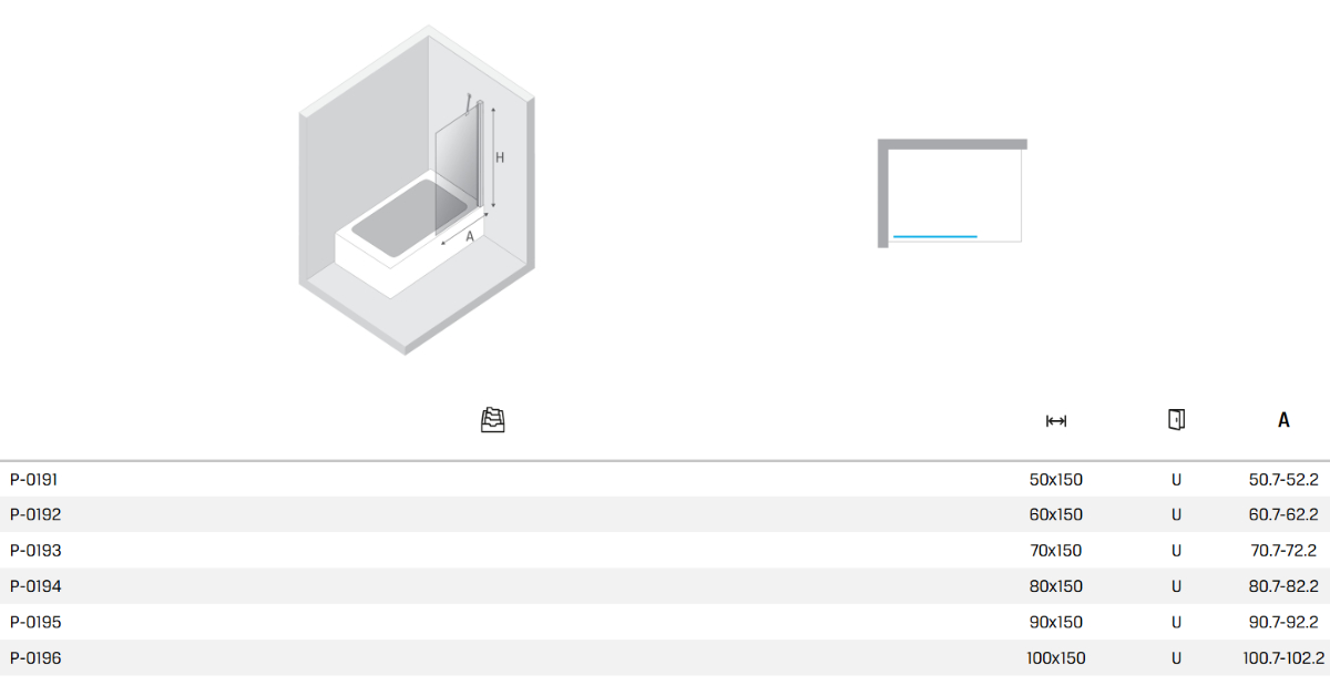 New Trendy New Modus Parawan Wannowy 70x150 cm Skrzydło Pojedyncze Nieruchome Szkło Przezroczyste...