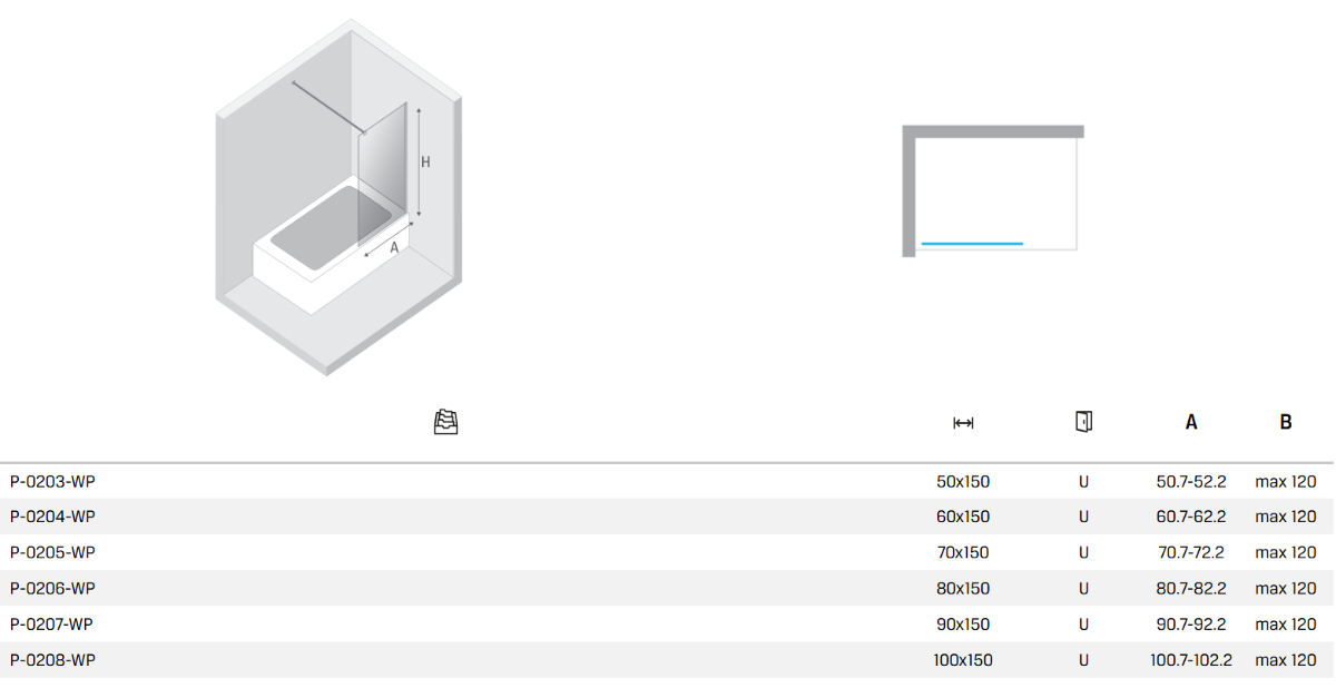 New Trendy New Modus Parawan Wannowy 100x150 cm Skrzydło Pojedyncze Nieruchome Szkło...