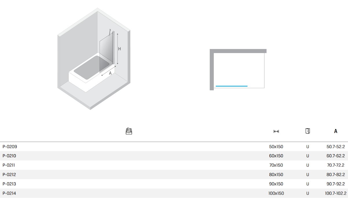 New Trendy New Modus Parawan Wannowy 80x150 cm Skrzydło Pojedyncze Nieruchome Szkło Przezroczyste...