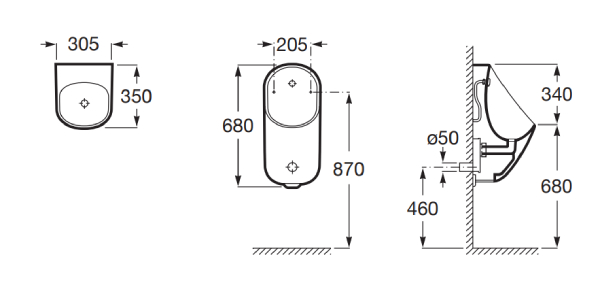 Roca Proton Pisuar Rimless z dopływem wody z tyłu Round (kompletny zestaw z syfonem) (A3590J3000)