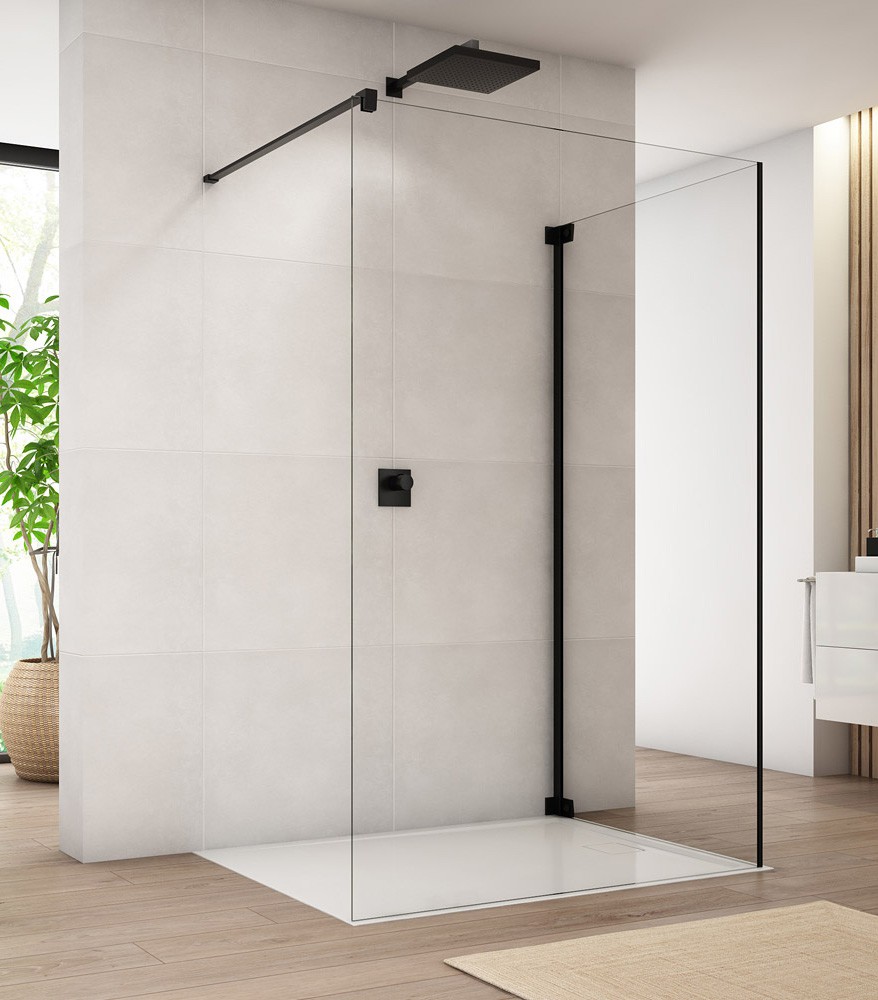New Trendy Nesta Kabina prysznicowa black WALK-IN U 80x200 cm 8mm Active Shield 2.0 - wspornik...