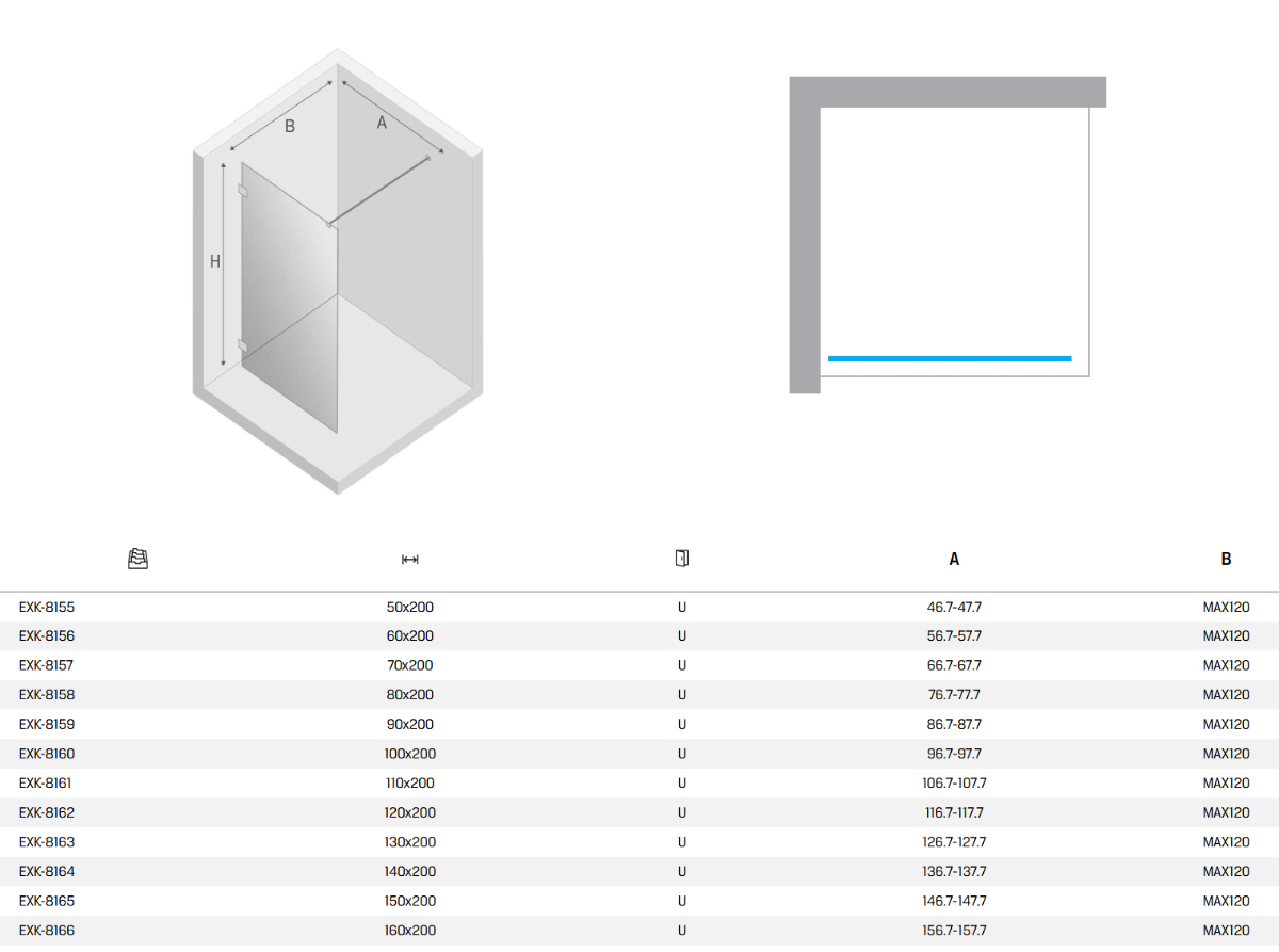 New Trendy New Modus White Kabina Walk-In 2 ścianki U 120x90x200 Przezroczyste 8mm (EXK-2291)