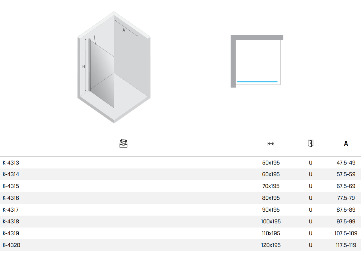Besco Icon kabina Walk-In przejrzyste szkło regulowana wys 120x200 (IC-120-200C)