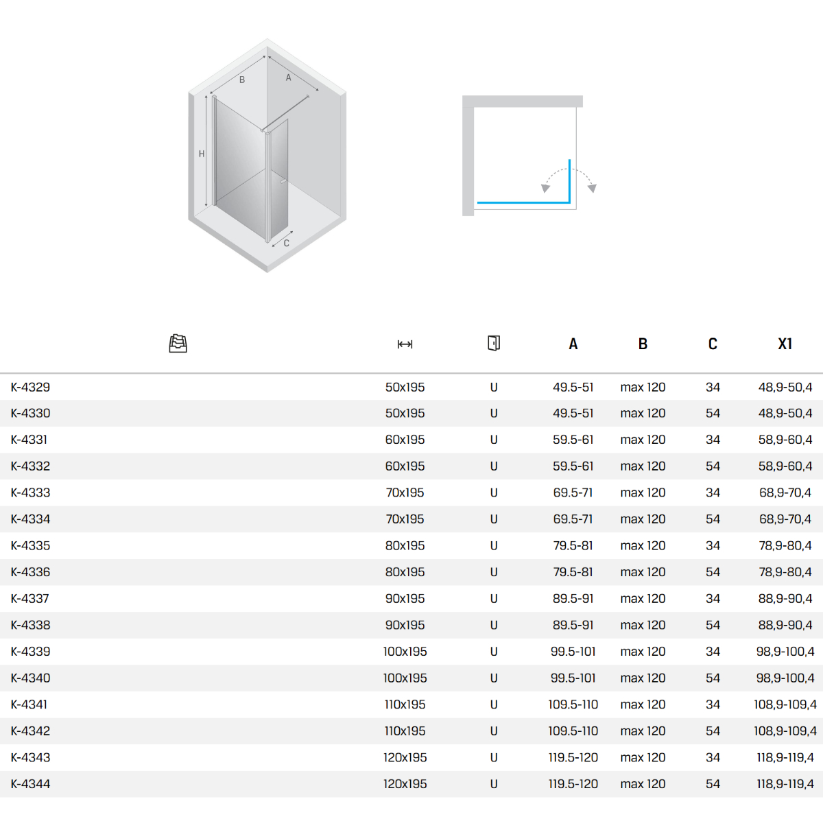 New Trendy Eventa Kabina prysznicowa walk in 3 ścianki 100x120x43x200 cm...