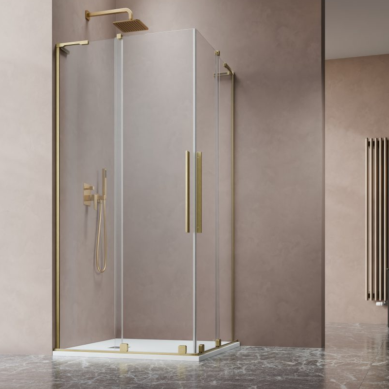 New Trendy New Soleo Kabina prysznicowa gold brushed 1D kwadratowa U 90x90x195 cm (K-4202)