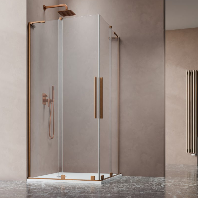 Vixor Milo 8 L CG2 Kabina prysznicowa prostokątna narożna miedź szczotkowana 120Lx90P cm (N05-29120-93-01L+N05-29090-93-01R)