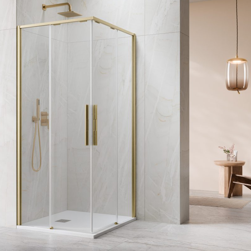 Vixor Tiso 6 Lite CG2 Kabina prysznicowa prostokątna złoty szczotkowany 80x100 cm (N14-21080-99-01L+N14-21100-99-01R)