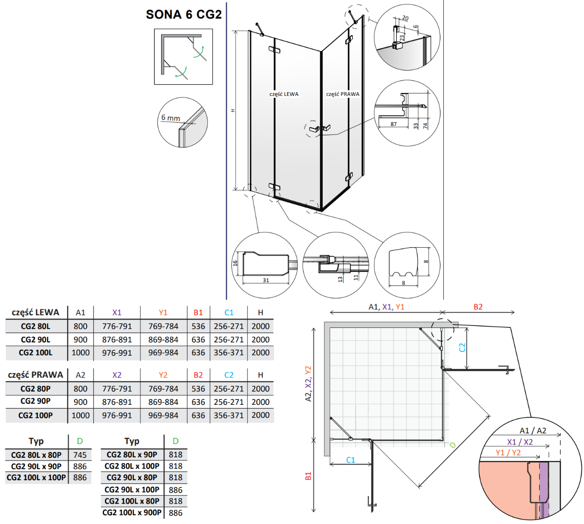 Vixor Sona 6 CG2 Kabina prysznicowa prostokątna gunmetal szczotkowany 100Lx90P cm (N01-21100-92-01L+N01-21090-92-01R)