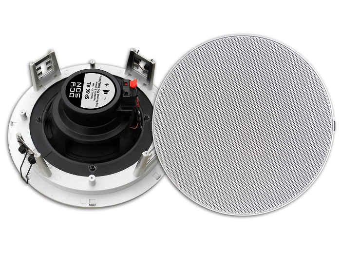 Dwa 5 calowe głośniki o mocy 15W z bocznymi zaciskami do szybkiego montażu.