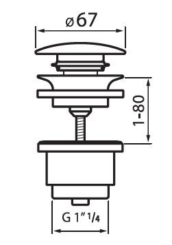AlcaPlast Spust umywalki click/clack 5/4" metalowy, duży korek, do umywalek bez przelewu A396