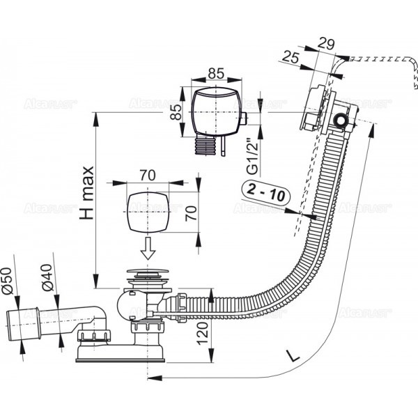 AlcaPlast Syfon wannowy automatyczny z napełnianiem i przelewem A564CRM2