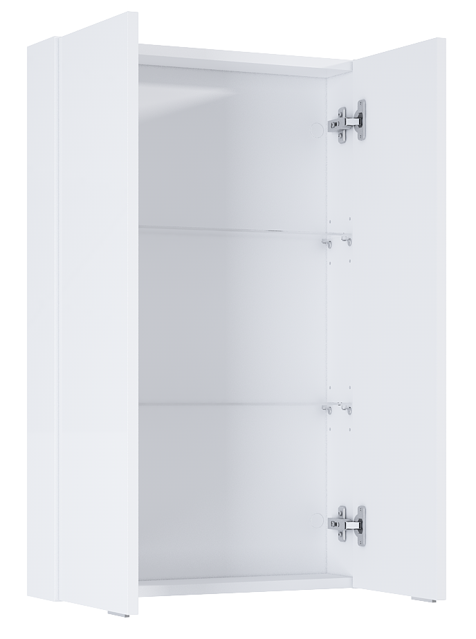 Szafka wisząca For All 50 cm, 2 drzwiczkek. Szafka o niestandardowej głęgokości 126 mm, wyposażona w 2 półki z regulowaną wysokością. Wykonana z materiałów wysokiej jakości, front i korpus lakierowany w kolorze white. Zawiasy wypinane z funkcją cichego samodomyku. Szafka może stanowić uzupełnienie wszystkich kolekcji mebli łazienkowych z naszej oferty.