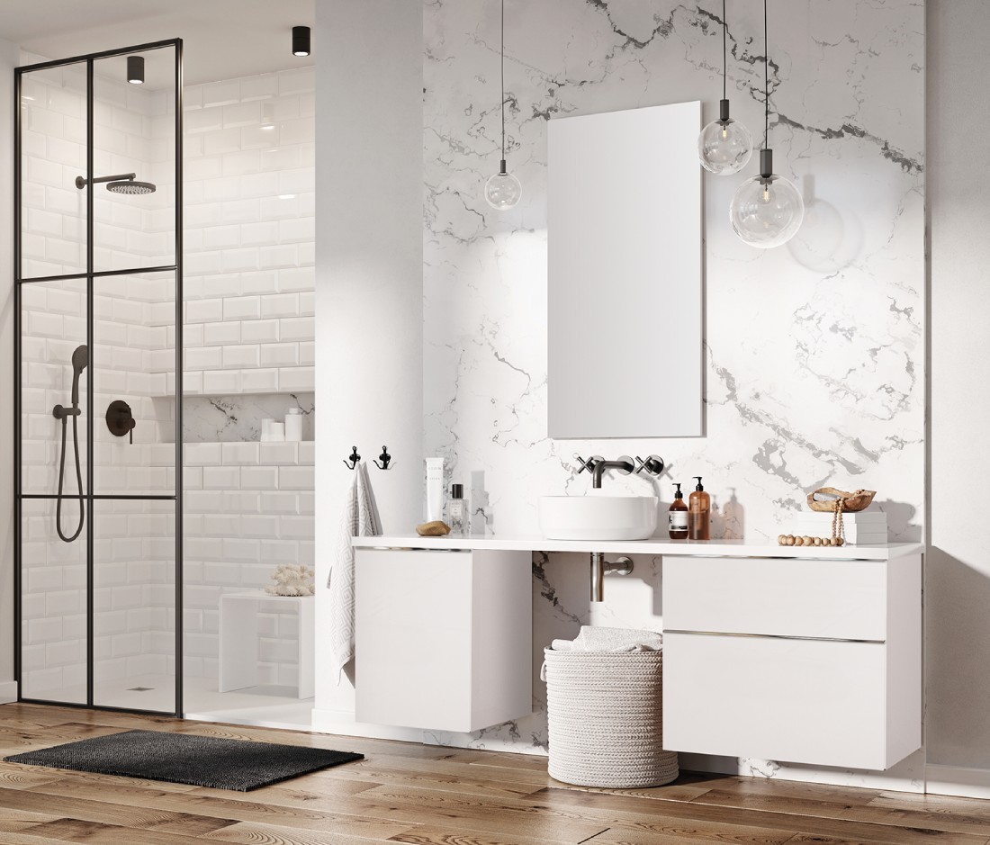 Kolekcja Look w skład której wchodzi szafka podumywalkowa z jedną lub dwiema szufladami, komoda, kontener, szafka wisząca, moduł duo i slim. Wzbogacona została o umywalki nablatowe Riko i Nysa i meblowe Skappa, Piazza, Maxxi, a także szafki z umywalką. Różnorodne blaty i podpory do nich uzupełniają serię Look. Całość dopełnia szeroki wybór luster, które zachowują ascetyczną formę zarówno w kształcie, jak i kolorystyce ramy. To idealne rozwiązanie na aranżację łazienki dla osób praktycznych, ceniących minimalizm.