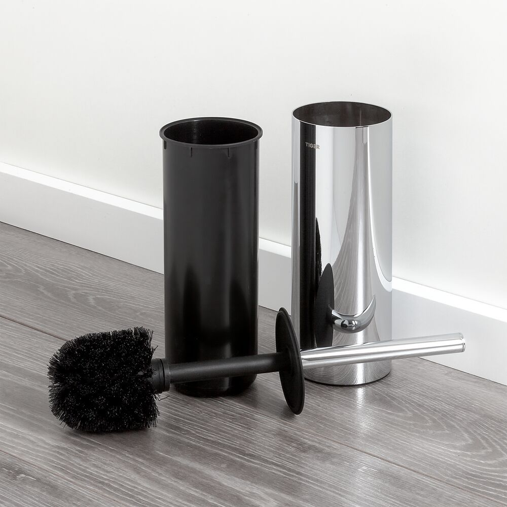 Wolnostojąca szczotka toaletowa Tiger Dock wykonana jest z wysokiej jakości materiałów i posiada atrakcyjne, chromowane wykończenie. Została zaprojektowana z myślą o optymalnej łatwości użytkowania i higienie. Pojemnik na szczotkę wyposażony jest w plastikową wkładkę wewnętrzną, a szczotka toaletowa posiada elastyczne wieko. Zewnętrzna część wyposażona jest w plastikową podstawkę, która zapobiega powstawaniu zarysowań.
